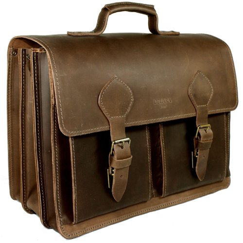 DELARA Serviette Spacieuse en Cuir de Selle - Bandoulières, Épaulette et Soin de Cuir Intensif Inclus: Amazon.fr: Bagages