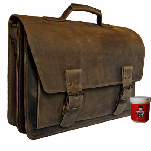 Une serviette élégante, moderne et très solide en cuir fin naturel de b?uf en marron vieux antique.