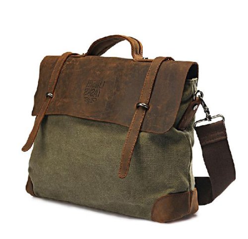 Sac cartable Vert sur Sac d'épaule Canvas Sac à main Avec Poignée Sacoche Vintage Cartable de Collège Université Fac école Unisexe pour Homme ou Femme (Vert)