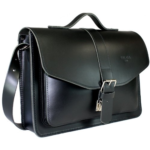 Serviette porte-documents cuir grainé à partir de à bandoulière avec sacoche pour Ordinateur portable Noir en Cuir de Selle - Bandoulières,