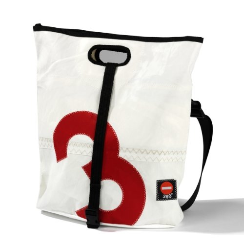 sac en voile de bateau avec chiffre rouge de 360°. la bretelle est réglable en longueur. Les sacs en voile de bateau 360° sont fabriqués avec des voiles